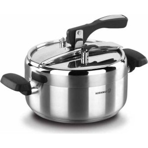 Tlakový hrnec 6l . Tlakový hrnec je vyroben z prvotřídní nerezavějící oceli 18/10 a velmi odolného plastu.