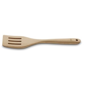 Špachtle Calla štěrbinová z bukového dřeva má 3 štěrbiny a otvor na rukojeti, takže ji můžete snadno zavěsit na háček nebo provaz.