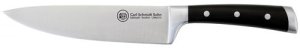 Vysoce kvalitní kovaný kuchařský nůž s čepelí délky 20 cm a plastovou nýtovanou rukojetí, síla čepele 3.5 mm.