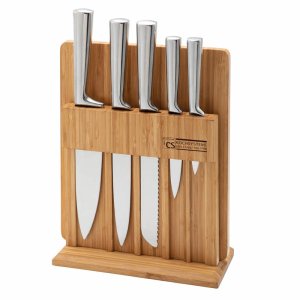 Luxusní sada 5 různých nožů v masivním bambusovém bloku od německé značky CS Solingen navazuje na tradiční výrobu japonských nožů a hravě si poradí s přípravou nejrůznějších ingrediencí.