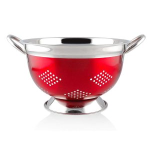 Cedník nerezový AVANZA 23,5 cm, červený, tloušťka stěny 0,35 mm, výška 13,5 cm.