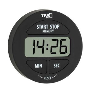 rozměry: pr. 55 x 17 mm hmotnost: 27 g rozsah: doba až 99 minut, 59 sekund materiál: guma barva: černá s magnetem pro upevnění montáž na zeď nebo postavení na stůl včetně 1 x LR44 baterie Digitální minutník …