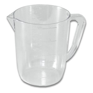 Objem měření 1 litr, výška odměrky 14 cm a průměr 11.5 cm.