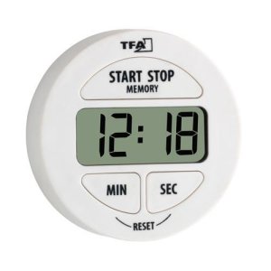 rozměry: pr. 55 x 17 mm hmotnost: 27 g rozsah: doba až 99 minut, 59 sekund materiál: guma barva: bílá s magnetem pro upevnění montáž na zeď nebo postavení na stůl včetně 1 x LR44 baterie Digitální minutník …
