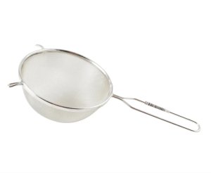 Kvalitní pevný nerezový cedník s dvojitým tkanivem pro jemné cedění.