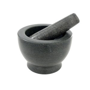 Hmoždíř s paličkou z přírodní žuly na drcení koření i bylinek.