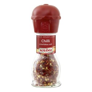S mlýnkem Kotányi Chilli s mořskou solí dodáte ostrost jednoduše každému jídlu V mlýnku naleznete nejslabší chilli z námi nabízené škály, obsažená hodnota je 8.000-9.500 Scoville jednotek Sypký kořenící …