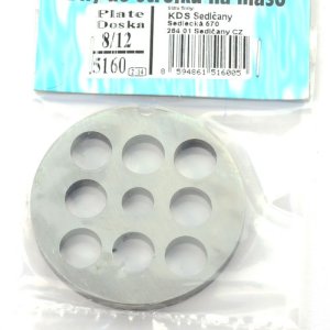 průměr: 69,5 mm průměr stř.otvoru: 10 mm vrtání: 12 mm Deska do mlýnku na maso č. 10/12 na mletí masa a jiných surovin.