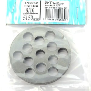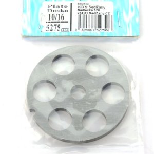 průměr: 69,5 mm průměr stř.otvoru: 10 mm vrtání: 10 mm Deska do mlýnku na maso č. 10/10 na mletí masa a jiných surovin.