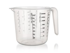 Plastová odměrka o objemu 1 l je vhodná pro odměřování sypkých i tekutých potravin díky přehledným stupnicím.