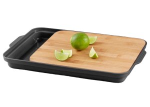- materiál: bambusové dřevo- velmi odolný přírodní materiál s lehkou údržbou- drážka zabraňuje stékání šťávy na pracovní desku- hladký a snadno čistitelný povrch- průměr: 25 cm- výška: 1,8 cm
