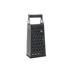 Černé kuchyňské struhadlo 4stranné s rukojetí 24 cm. 4stranné struhadlo se 3 různými hrubostmi a plátkovačem.