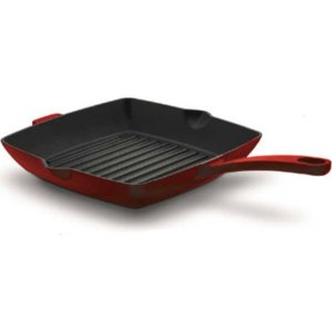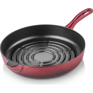 Hranatá grilovací pánev z litiny je opatřena praktickým mřížkovým dnem.