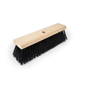 kvalitní silniční koště s bukovým tělem dřevěné bukové těleso 34×7,5 cm vlákno PET, barva vláken - černá, výška 9 cm násada 140 cm