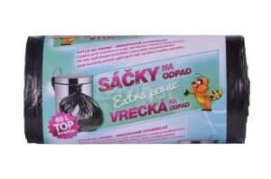 Černé extra pevné odpadkové pytle jsou odolné proti protržení a vodě.