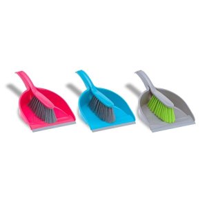 Smeták s holí + lopatka + smetáček, PH mix barev. materiál: plast mix barev: modrá, zelená, šedá Úklidová souprava obsahuje lopatku se smetáčkem a smeták s dlouhou holí.