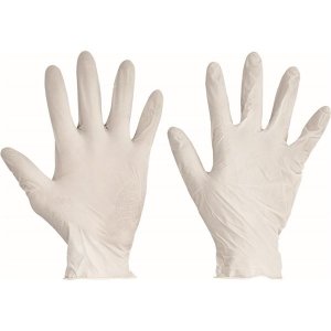 Jednorázové latexové pudrované rukavice vhodné pro krátkodobý styk s potravinami Hmotnost: 5,5 g Pudrované Balené po 100 ks v boxu EN ISO 21420 EN ISO 374-1 (typeB K1 O6 P4 T4) EN ISO 374-5 (virus pass) …