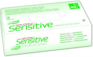 Vyšetřovací rukavice DONA Sensitive 9015 - nesterilní, lehce zaprášené.