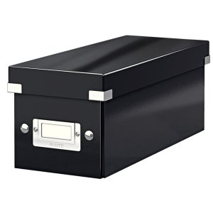 Atraktivní archivační krabice s víkem na CD Kapacita: 30 CD ve standardních obalech, 60 CD v úzkých obalech nebo 165 CD v papírových obálkách Rozměry: 14,3 × 13,6 × 35,2 cm (š × v × h)