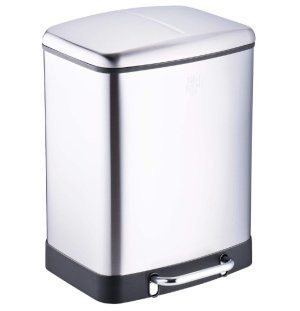 Odpadkový koš se 2 vyjímatelnými nádobami o objemu 20 l, snadné třídění odpadu, jednoduchá údržba, praktický nášlapný systém pro pohodlné otevření víka, nerezové provedení.