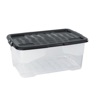 Univerzální plastová nádoba s víkem uzavřeným dvěma pevnými západkami je praktickým řešením pro uložení nejrůznějších předmětů.