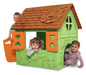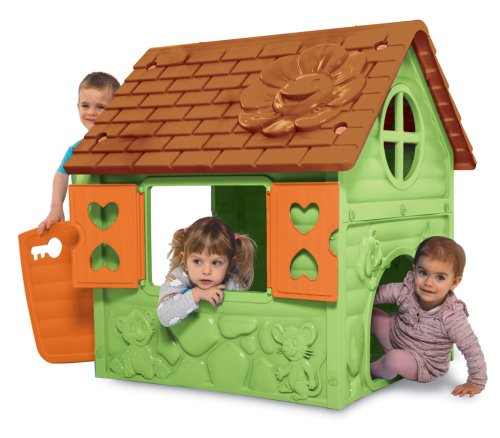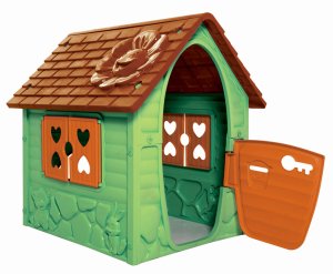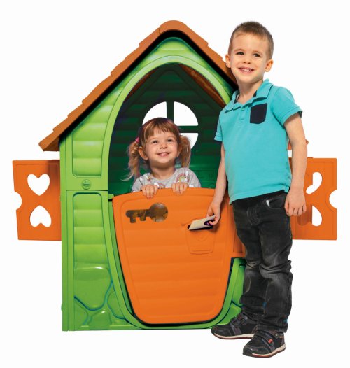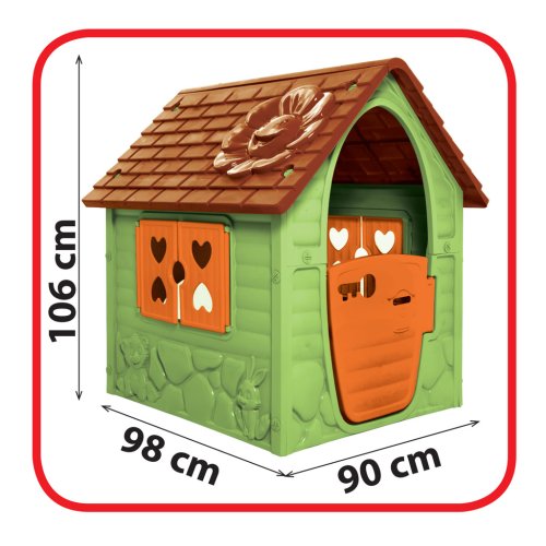 Domeček s kytičkou zelený s oranžovými dveřmi a okny s hnědou střechou – velmi jednoduché sestavení. Domeček má jedno otevírací okno, otevírací dveře. Pro svoji velikost je vhodný pro venkovní i vnitřní užití. Vyrobeno z kvalitního a odolného plastu v EU.