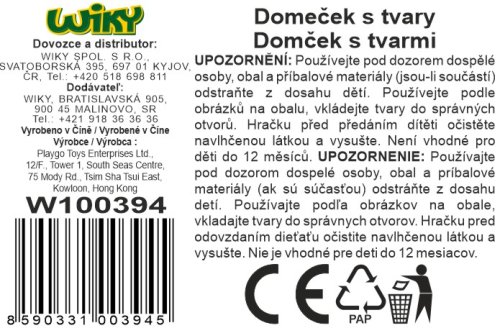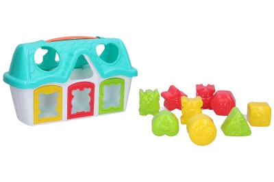 Domek vkládačka set. Obsahuje 10 kostek. Velikost domečku 26 cm.
