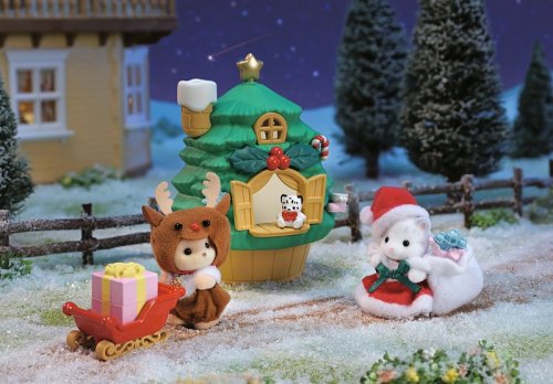 Sada Santův vánoční domek ve tvaru stromečku s figurkami a doplňky vykouzlí tu pravou vánoční atmosféru. Sada obsahuje dvě figurky sněžného leoparda Lalu oblečenou v santovských šatičkách a čepici, karamelového psa Justina v kostýmu vánočního soba. Součástí jsou krásné doplňky: sáňky, dáreček, pytel na dárky, dodací karta, tři ozdoby na domeček a tři dárky – mini stromeček, mini vzducholoď a plyšové zvířátko. Hračky Sylvanian Families rozvíjejí představivost a povzbuzují děti k hraní rolí. Hra s figurkami rozvíjí kreativitu a učí emocím vytvářením a vyprávěním příběhů založených na každodenních zážitcích a pozorování světa. Vyznačují se nejvyšší kvalitou a výjimečným důrazem na detaily. Figurky Sylvanian Families jsou pokryté měkkým semišem, mají pohyblivé končetiny a hlavu. Oblečení lze z figurek sundat a vyměnit za jiný outfit. Baleno v krabičce. Rozměry balení: 15 x 18 x 8,5 cm. Věk: 3+
