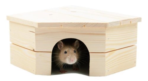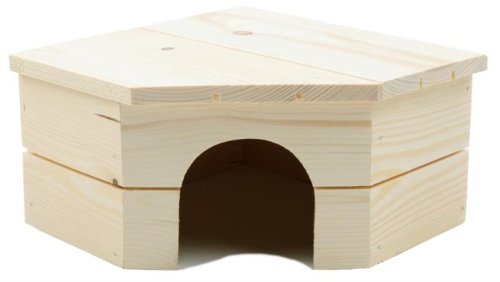 Rohový domeček z měkkého dřeva s rovnou střechou pro morčata, potkany a jiné drobné hlodavce. Velmi snadná údržba uvnitř domečku. Domeček nemá dno, takže ho stačí pouze odklopit a místo pod ním vyčistit. Domeček je vyroben z přírodního dřeva, které není nijak napuštěno ani natřeno. Rozměry: 21 x 21 x 12 cm
