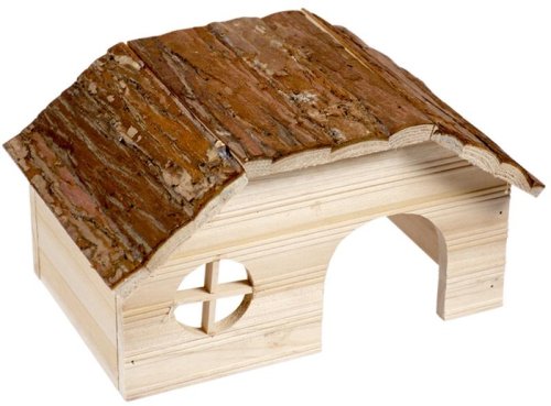 Přírodní domek pro hlodavce se střechou z kůry. Poskytne zvířatům bezpečné místo pro hru a klidné, zastíněné místo pro odpočinek. Domek poslouží i jako přírodní materiál k hlodání a obrus hlodavých zubů. Dřevěný materiál podporuje přirozený hlodavý instinkt. Hlodání je důležité pro dostatečné obrušování stále rostoucích hlodavých zubů a udržení jejich růstu pod kontrolou. Rozměry: vnější rozměry domku: délka 28 cm, šířka 18 cm (včetně přesahu střechy), výška 16 cm půdorys vnitřního prostoru: 22,5 x 13,5 cm vstupní otvor: 8,5 x 8,5cm