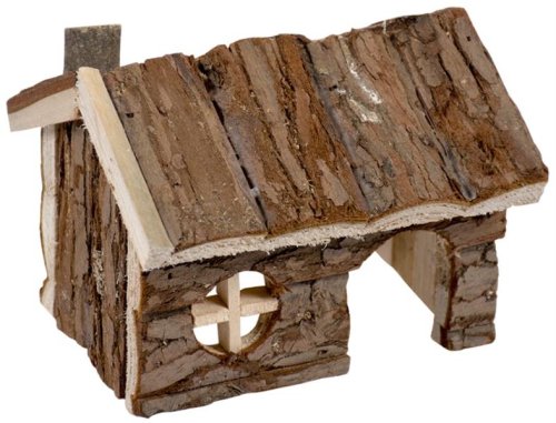 Dřevěný domek s kůrou pro malé hlodavce. Poskytne zvířatům bezpečné místo pro hru a klidné, zastíněné místo pro odpočinek. Domek poslouží i jako přírodní materiál k hlodání a obrus hlodavých zubů. Dřevěný materiál podporuje přirozený hlodavý instinkt. Hlodání je důležité pro dostatečné obrušování stále rostoucích hlodavých zubů a udržení jejich růstu pod kontrolou. Rozměry: 14x12cm, výška 11cm půdorys vnitřního prostoru: 11 x 6cm vstupní otvor: šířka 4cm, výška 5cm