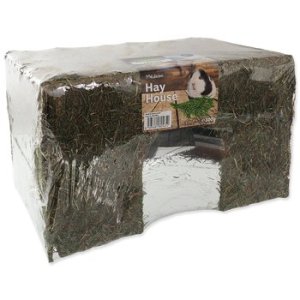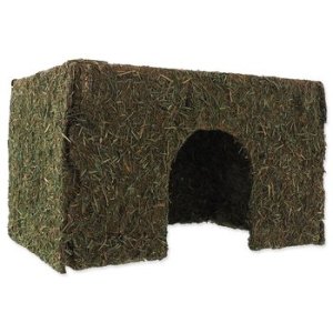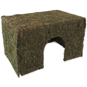 - Domek ze sena vhodný pro hlodavce střední velikosti, například pro morčata, osmáky a potkany.