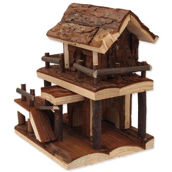 Domek Small Animals dřevěný jednopatrový s kůrou 17x15x20cm