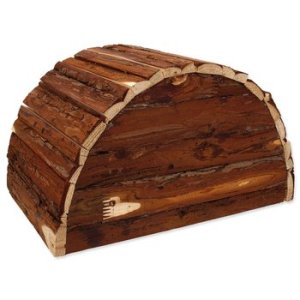 Dřevěný půlkruhový domek pro hlodavce.