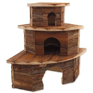 Domek Small Animals Rohový dřevěný s kůrou 16x16x11cm