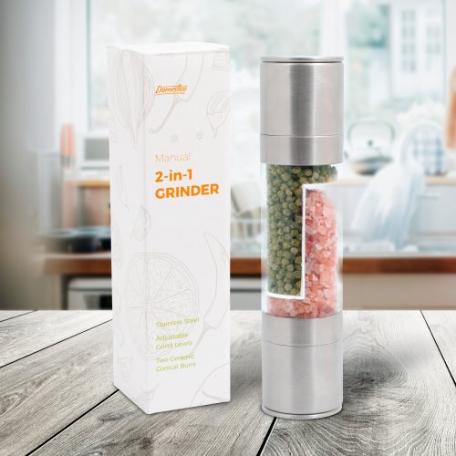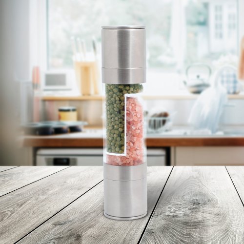Oboustranný manuální mlýnek Duette 2v1 je velmi univerzální. Můžete jej použít na sůl a pepř či jakékoliv koření. Mletí probíhá pomoci velmi kvalitního keramického mechanismu, díky kterému bude sůl, pepř i koření ideálně namleto. Mlecí mechanismy můžete navíc snadno nastavit na několik hrubostí mletí. Vnitřní dělení je navrženo tak, aby si koření uchovalo své aroma, které zároveň nikdy nepřejde do druhé části. Celý mlýnek je velmi krásně a designově zpracován. Bude netradiční ozdobou v kuchyni i při stolování. Díky tomu, že je mlýnek průhledný, máte neustále výborný přehled, kde máte které koření a zda není potřeba doplnit.