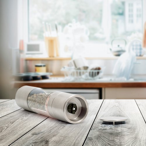 Materiál: Nerezavějící kartáčovaná ocel, plast, keramický mlecí mechanismus