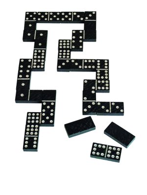 Stolní hra se sadou dominových kamenů o rozměrech 20x40 mm v krabičce. Kameny mají na sobě kombinaci dvou čísel.
