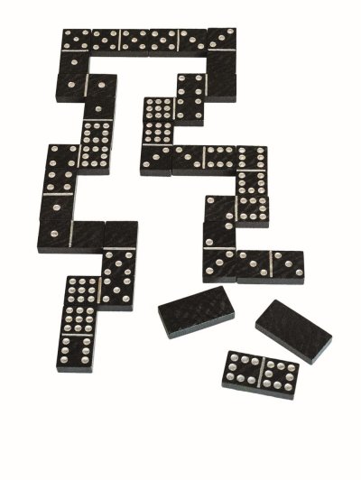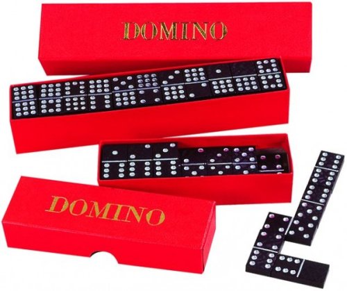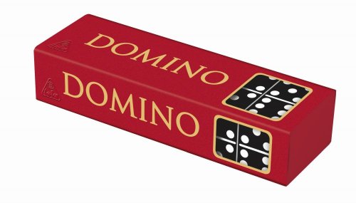 Stolní hra se sadou dominových kamenů o rozměrech 20x40 mm v krabičce.
