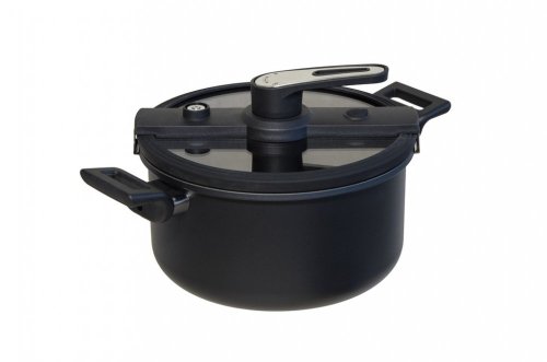 Speciální víko s tvrzeným sklem,silikonovým těsněním a 2 bezpečnostními ventily