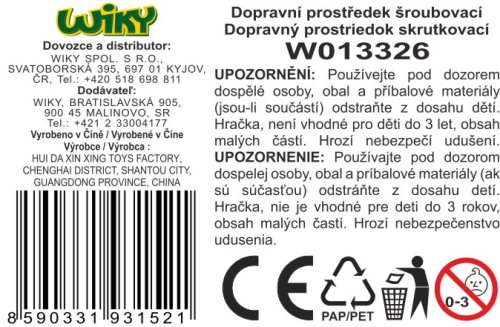 Dopravní prostředek šroubovací. Velikost formule 15 cm, auta 13 cm. Šroubovák součástí. 2 varianty - auto, formule.