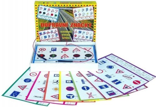 Zábavná didaktická hra pro děti od 6 let, která funguje na principu elektronického zkoušecího obvodu. Děti se hravou formou naučí 80 nejběžnějších dopravních značek. Úkolem je přiřadit ke každé značce správný název.