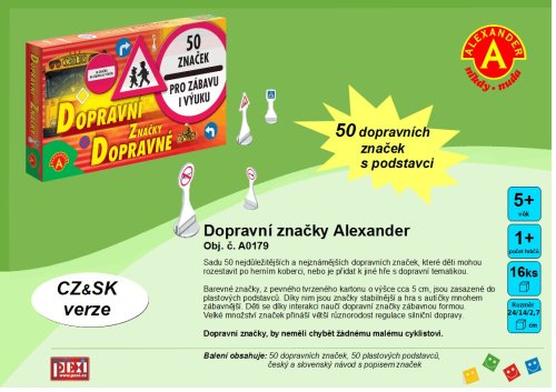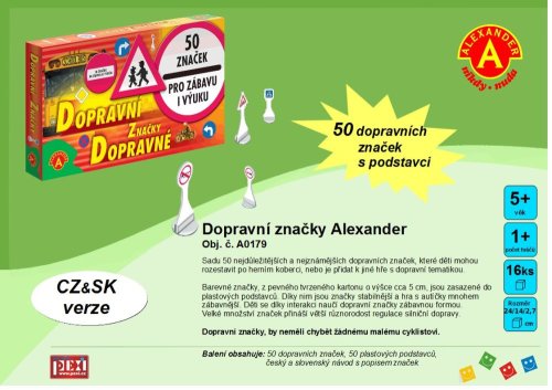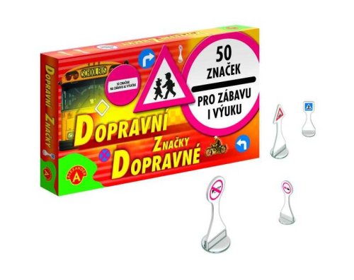 Dopravní značky. Značky jsou vysekané z pevného materiálu a vkládají se do plastových stojánků. Balení obsahuje 50 ks značek.