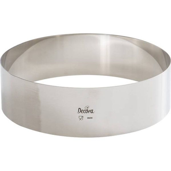 Dortový ráfek vyrobený z nerezové oceli pro přípravu pečených i nepečených dezertů. Rozměry 24 x 6 cm.