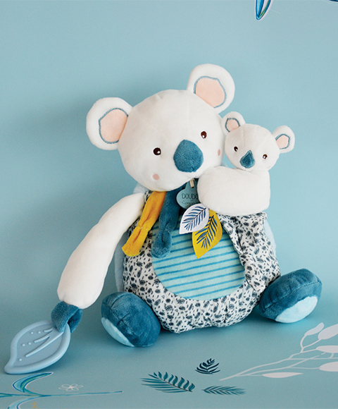 Plyšová koala Yoca doprovází miminko od narození, aby mu přinesla hebkost, pohodlí a objetí. Koala Yoca a její miminko rozvíjí smysly a zvědavost. Je to velmi pěkný dárek k Vánocům nebo k oslavě narození miminka. Je extrémně měkká a příjemná na dotek. Rozkošný koala s miminkem je posazená do nádherné dárkové krabičky s grafikou evokující modernost i luxus. Údržba: Perte v lázni na 30°. Přirozené nebo nízkoteplotní sušení. Hlavní vlastnosti: měkký plyš, prémiový materiálv souladu s evropskými normami CEkrásná dárková krabičkavhodné od narození