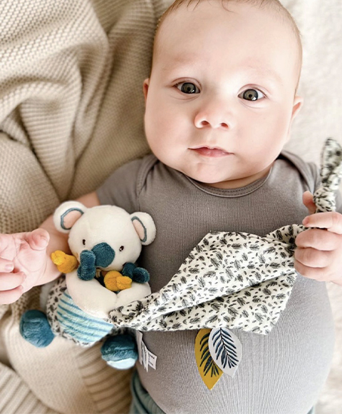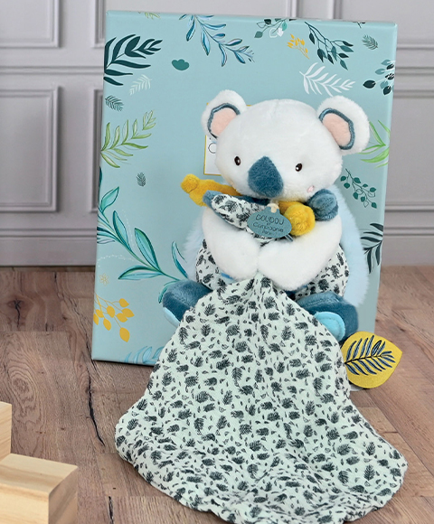 Plyšová koala Yoca doprovází miminko od narození, aby mu přinesla hebkost, pohodlí a objetí. Je to velmi pěkný dárek k Vánocům nebo k oslavě narození miminka. Je extrémně měkká a příjemná na dotek. Rozkošná koala s usínáčkem je posazená do nádherné dárkové krabičky s grafikou evokující modernost i luxus. Údržba: Perte v lázni na 30°. Přirozené nebo nízkoteplotní sušení. Hlavní vlastnosti: měkký plyš, prémiový materiálv souladu s evropskými normami CEkrásná dárková krabičkavhodné od narození