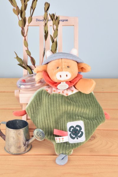 Kravička Aneth o velikosti 21 cm z kolekce „Moje zahrada“ je roztomilá hračka s chrastítkem ve tvaru kroužku s malými barevnými kuličkami. Chrastítko stimuluje smysly dítěte a pomáhá mu rozvíjet jemnou motoriku. Kravička v kloboučku má na sobě zelený manšestrový obleček s květovaným límečkem. Vybízí ke zkoumání a mazlení a dítě zabaví i uklidní. Je zabalena v pěkné potištěné dárkové krabičce pro uložení vzpomínek (fotografie a další připomínky narození miminka) s veršovaným textem v angličtině na spodní straně. Ideální dárek pro jakoukoliv příležitost. ÚdržbaPerte v lázni na 30°. Sušte přirozeně nebo v sušičce při nízké teplotě. Hlavní vlastnosti: hračka s chrastítkemprémiový materiálpodporuje smyslový a motorický vývoj dítětev souladu s evropskými normami CEdárková krabička pro uložení vzpomínekvhodné od narozeníideální dárek