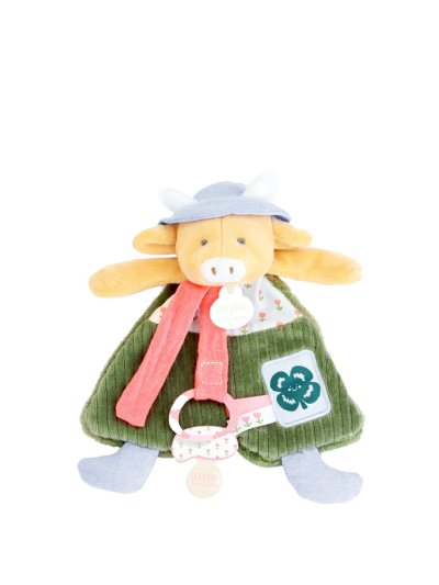Kravička Anette o velikosti 19 cm z kolekce „Moje zahrada“ je roztomilá hračka s praktickým integrovaným úchytem dudlíku. Je oblečena do zeleného manšestrového oblečku s květovaným límečkem. Různé textury vybízejí ke zkoumání a mačkání a dítě zabaví i uklidní. Hračka je zabalena v pěkné dárkové krabičce pro uložení vzpomínek (fotografie a další připomínky narození miminka) s veršovaným textem v angličtině na spodní straně. Ideální dárek pro jakoukoliv příležitost. Kolekce hraček „In my garden“ – Moje zahrada je inspirovaná přírodou. Hračky jsou zabalené v pěkných dárkových krabičkách ilustrovaných akvarelem a připomínají různorodost a barvy zahrady, což je podtrženo i jejich jmény jako je Ciboulette (pažitka), Aneth (kopr) a další. ÚdržbaPerte v lázni na 30°. Sušte přirozeně nebo v sušičce při nízké teplotě. Hlavní vlastnosti: držák na dudlík a hračka 2 v 1prémiový materiálv souladu s evropskými normami CEdárková krabička pro uložení vzpomínekvhodné od narozeníideální jako dárek