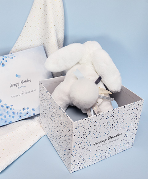 Tento králíček může být kamarád, polštářek, nebo také výzdoba dětského pokoje. Je extrémně měkký, stylový s bambulí v bílé barvě a efektním šátkem kolem krku. Praktická hračka na hraní doma nebo procházku. Pro miminko bude mít především uklidňující efekt. Díky jemným harmoniím trendy barev, směsím velmi jemných materiálů bude tato hračka lákat malé i větší děti. Rozkošný králíček je posazen do nádherné dárkové krabičky s grafikou evokující modernost i luxus. Ideální také jako dárek. Údržba: Perte v lázni na 30°, aby si zachoval svou hebkost. Přirozené nebo nízkoteplotní sušení. Hlavní vlastnosti: měkký plyš, prémiový materiálv souladu s evropskými normami CEkamarád, polštářek, nebo také výzdoba dětského pokojevhodné od narození