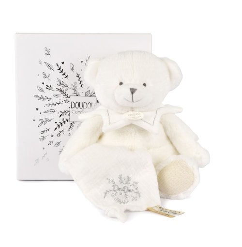 Plyšový medvídek je ideálním dárkem pro děti již od narození. Součástí medvídka je měkoučká dečka, která je skvělá k mazlení a může pomoci miminku snadněji usnout. Dečku lze jednoduše schovat do bříška medvídka, což je praktické při cestování nebo ukládání. Je ozdobená jemnou výšivkou značky Doudou a saténovými stuhami s láskyplnými vzkazy ve francouzštině, které dodávají každému mazlení ještě něžnější pocit. Medvídek má stylové růžové srdíčko na tlapce, roztomilý béžový límeček pod krkem a hebké béžové tlapky, které mu dodávají něžný a přátelský vzhled. Díky jemným, trendovým barvám a kvalitním, hebkým materiálům je ideální pro malé děti, kterým přináší pocit bezpečí a pohodlí. Perfektní tip na dárek, který potěší a zároveň stimuluje smysly Vašeho miminka. Údržba: Perte v lázni na 30°. Přirozené nebo nízkoteplotní sušení. Hlavní vlastnosti: měkký plyš, prémiový materiálvhodné od narozenív souladu s evropskými normami CEideální jako dárekpraktická dárková krabička